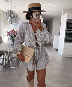 Schöner Musselin Einteiler aus 100% Baumwolle mit integrierter Hose und dehnbarem Gummibund. Einheitsgröße passt den Größen XS-L. Model eins ist 1.69m groß. Model zwei ist 1.65m.