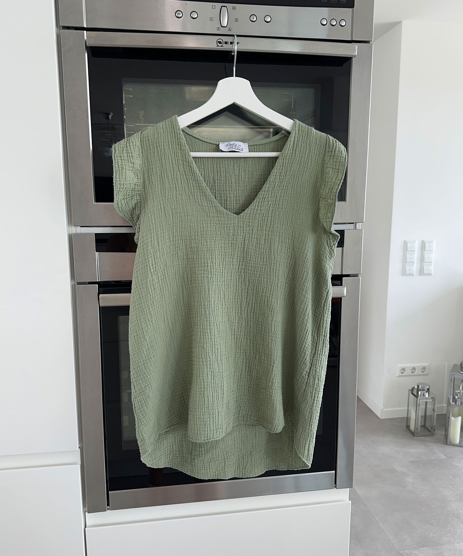Musselin Top aus 100% Baumwolle. Passt den Größen XS-L. Model ist 1,65m groß.