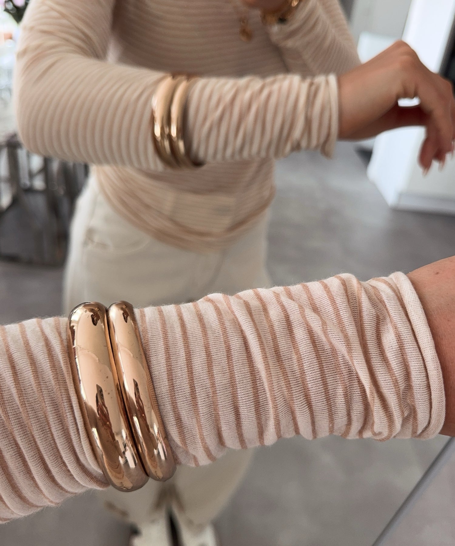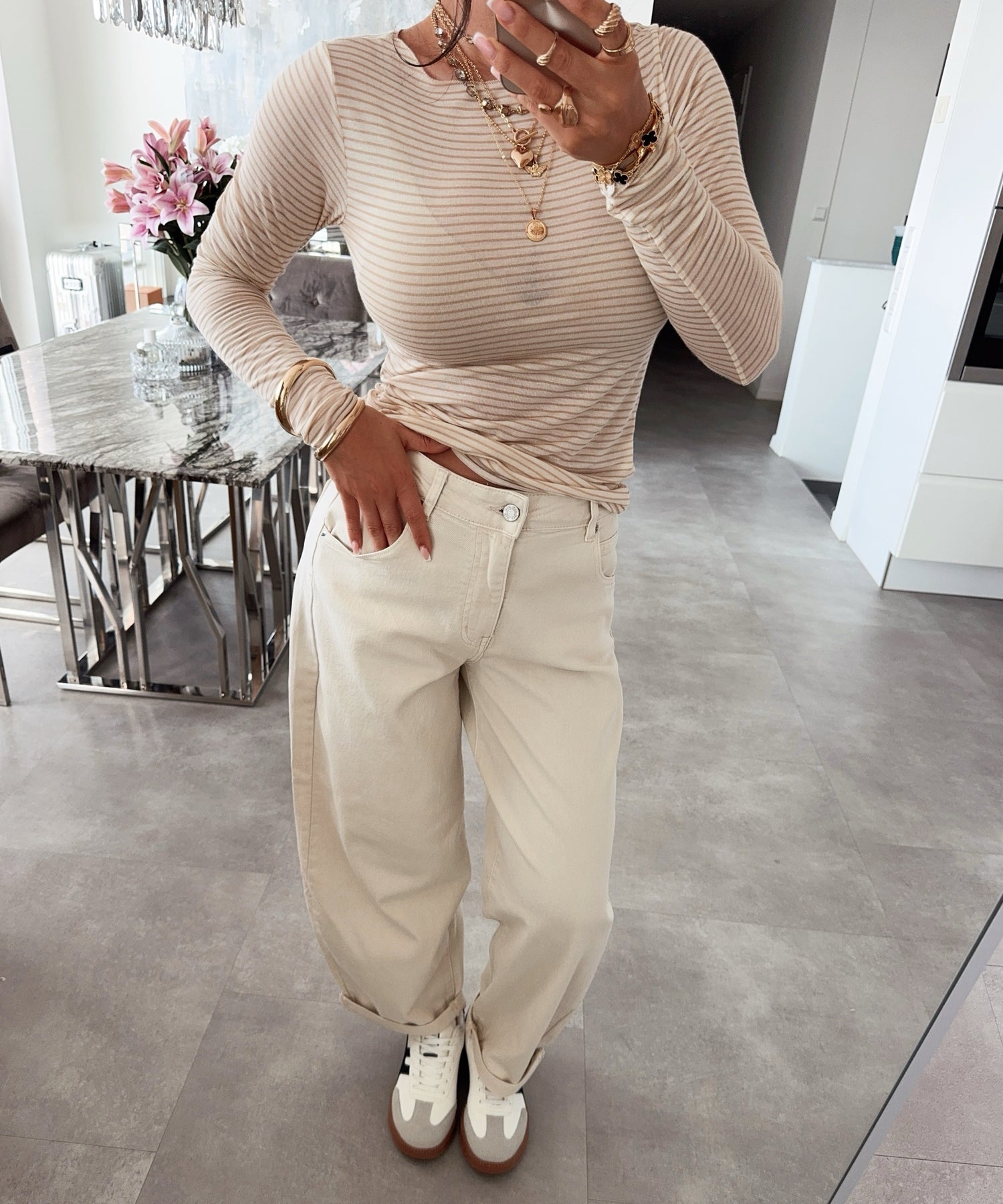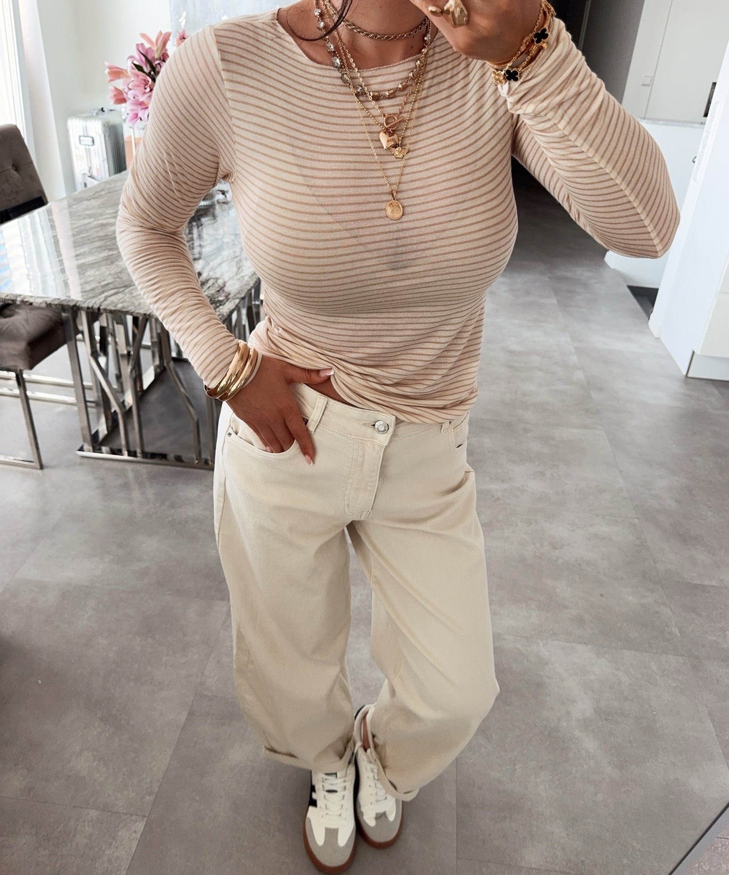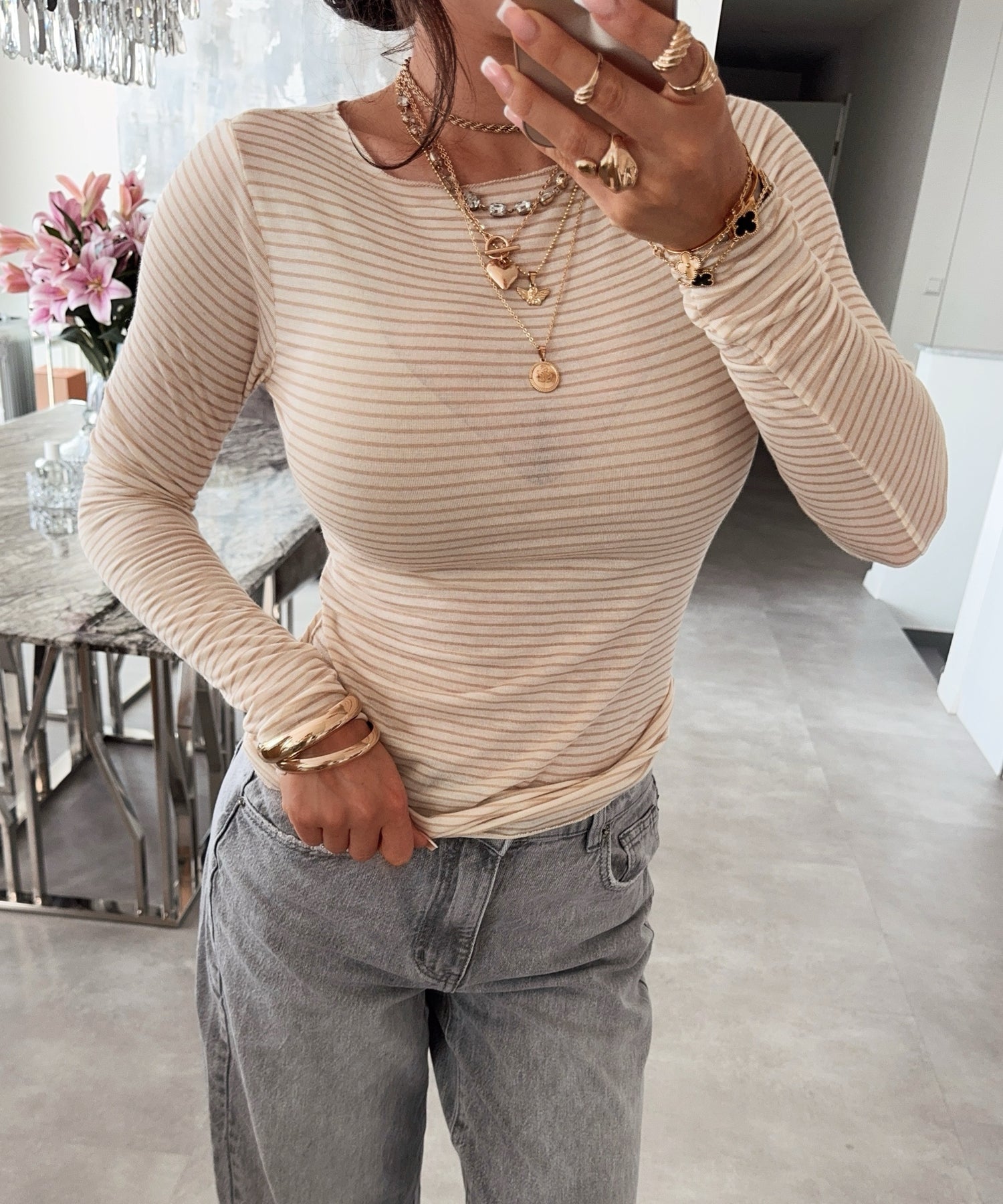 Viskose/Kaschmir Oberteil Leona Streifen Beige Ladypolitan ♡