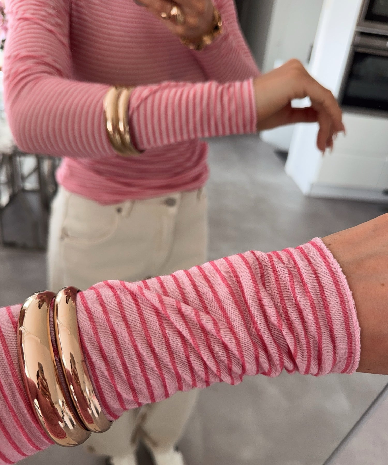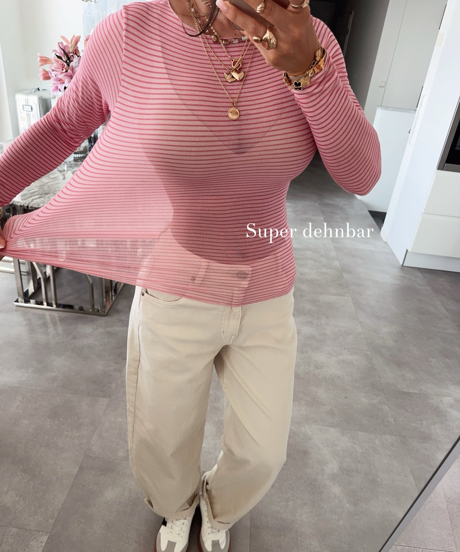 Viskose/Kaschmir Oberteil Leona Streifen Rosa Ladypolitan ♡